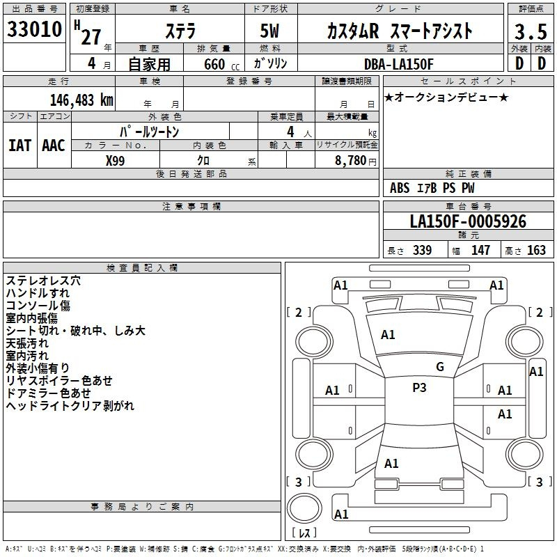 Subaru Stella, 2015 года - Лот№33010 ★3.5