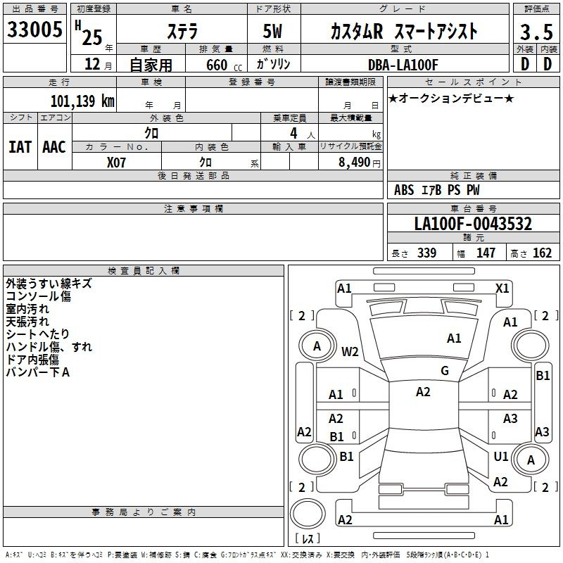 Subaru Stella, 2013 года - Лот№33005 ★3.5
