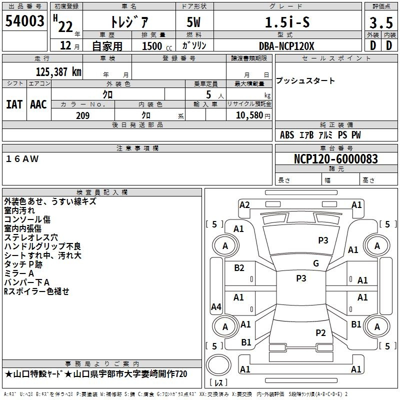 Subaru Trezia, 2010 года - Лот№54003 ★3.5