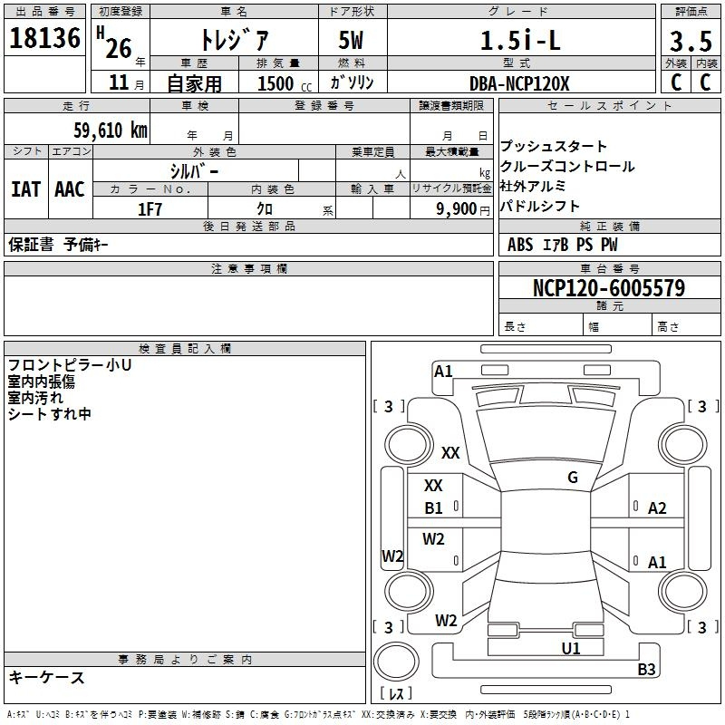 Subaru Trezia, 2014 года - Лот№18136 ★3.5
