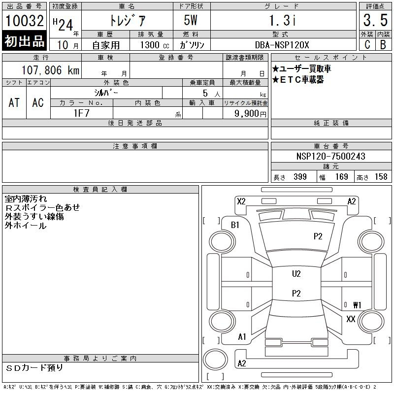 Subaru Trezia, 2012 года - Лот№10032 ★3.5