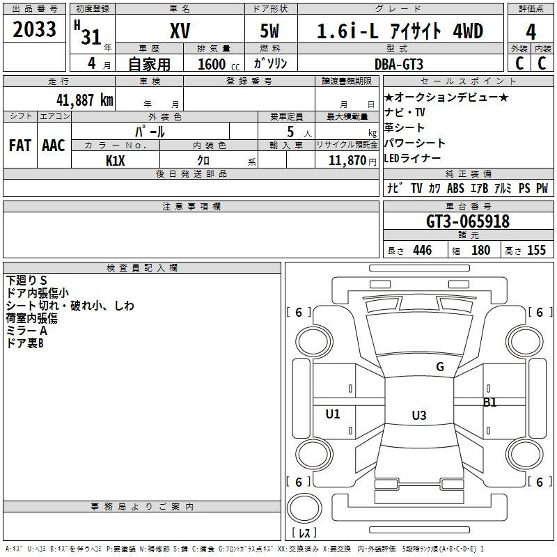 Subaru Xv, 2019 года - Лот№2033 ★4