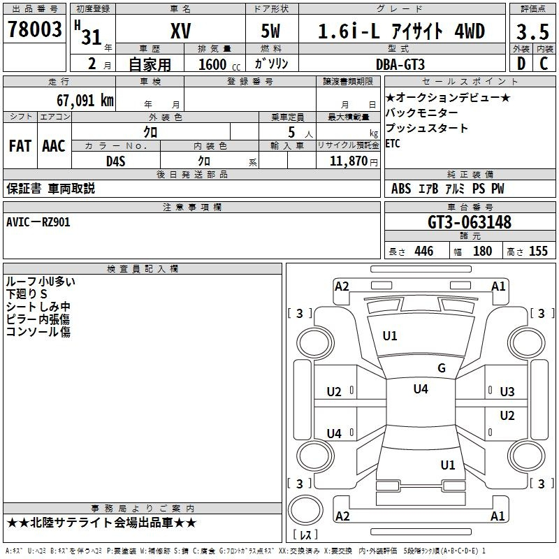 Subaru Xv, 2019 года - Лот№78003 ★3.5