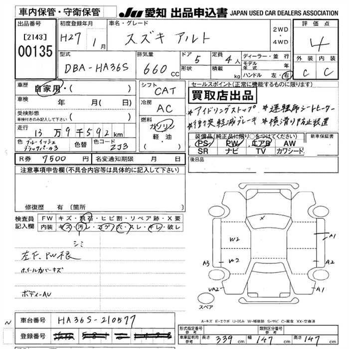 Suzuki Alto, 2015 года - Лот№135 ★4