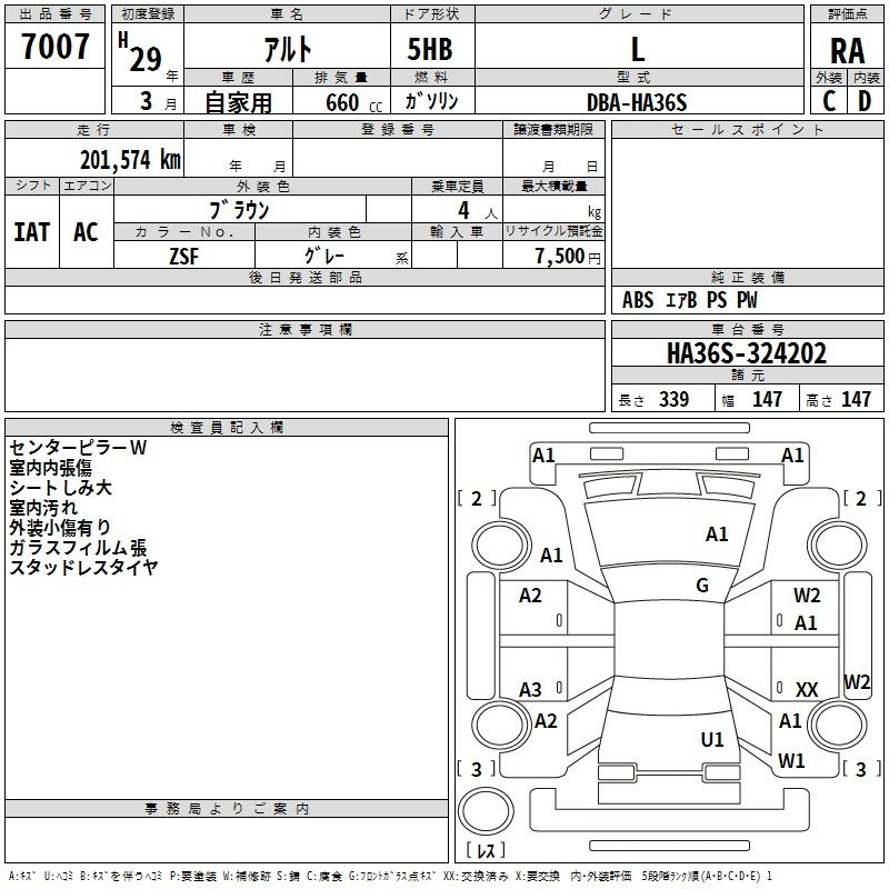 Suzuki Alto, 2017 года - Лот№7007 ★RA