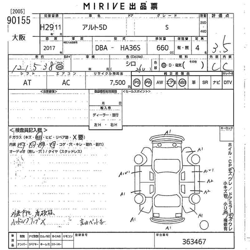 Suzuki Alto, 2017 года - Лот№90155 ★3.5