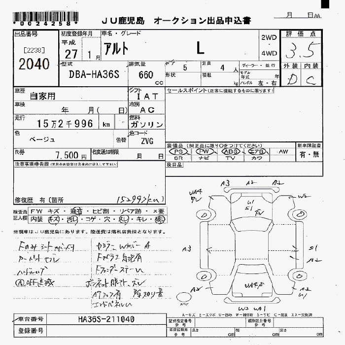 Suzuki Alto, 2015 года - Лот№2040 ★3.5
