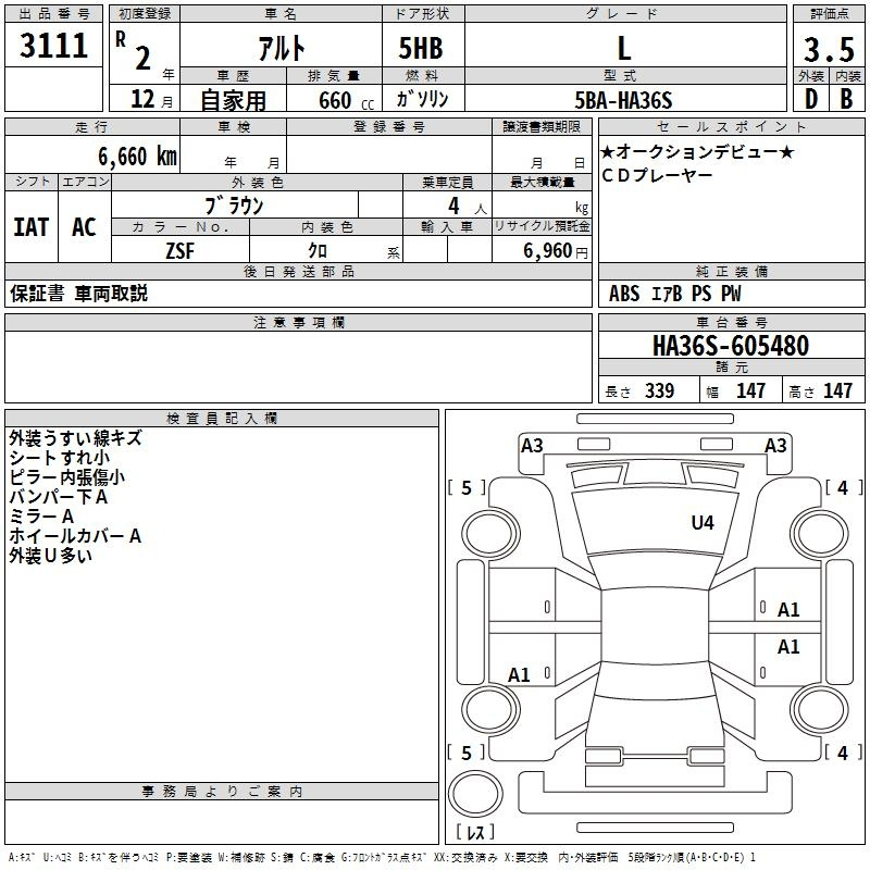 Suzuki Alto, 2020 года - Лот№3111 ★3.5