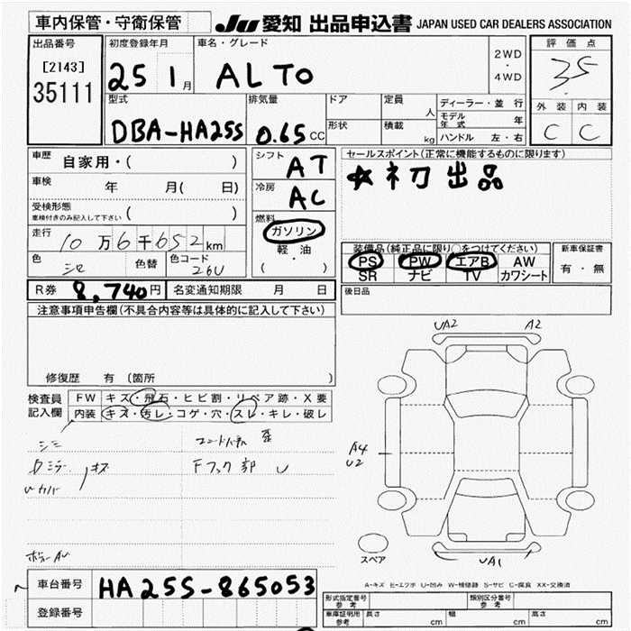 Suzuki Alto, 2013 года - Лот№35111 ★3.5