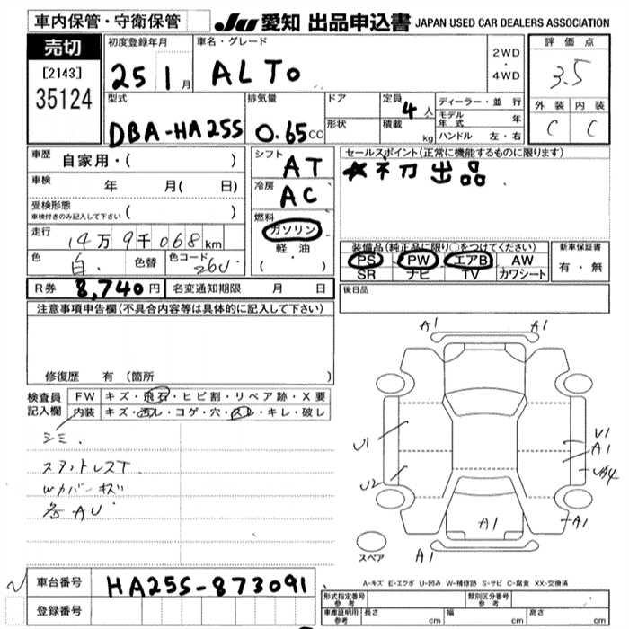 Suzuki Alto, 2013 года - Лот№35124 ★3.5