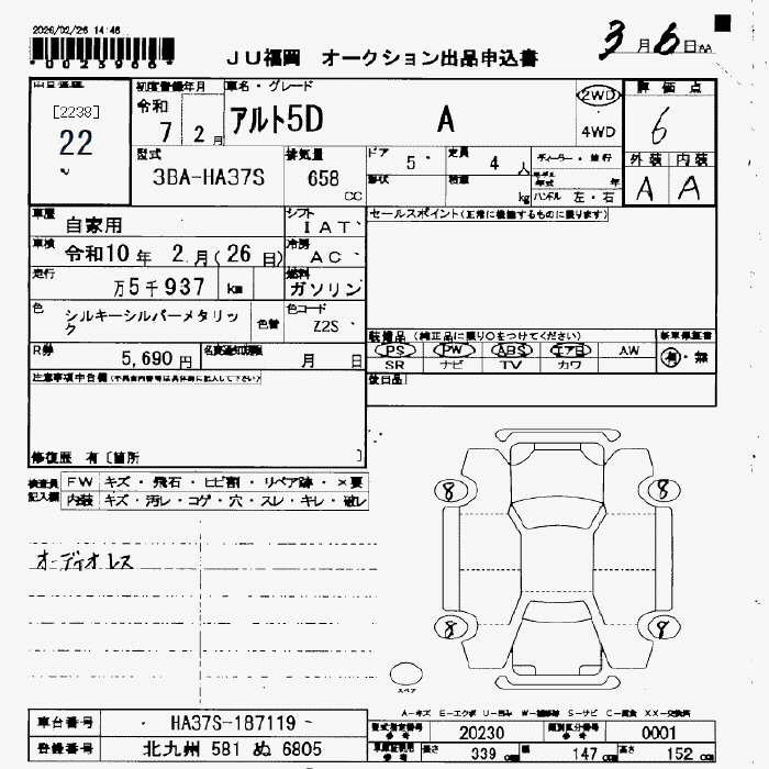 Suzuki Alto, 2025 года - Лот№22 ★6
