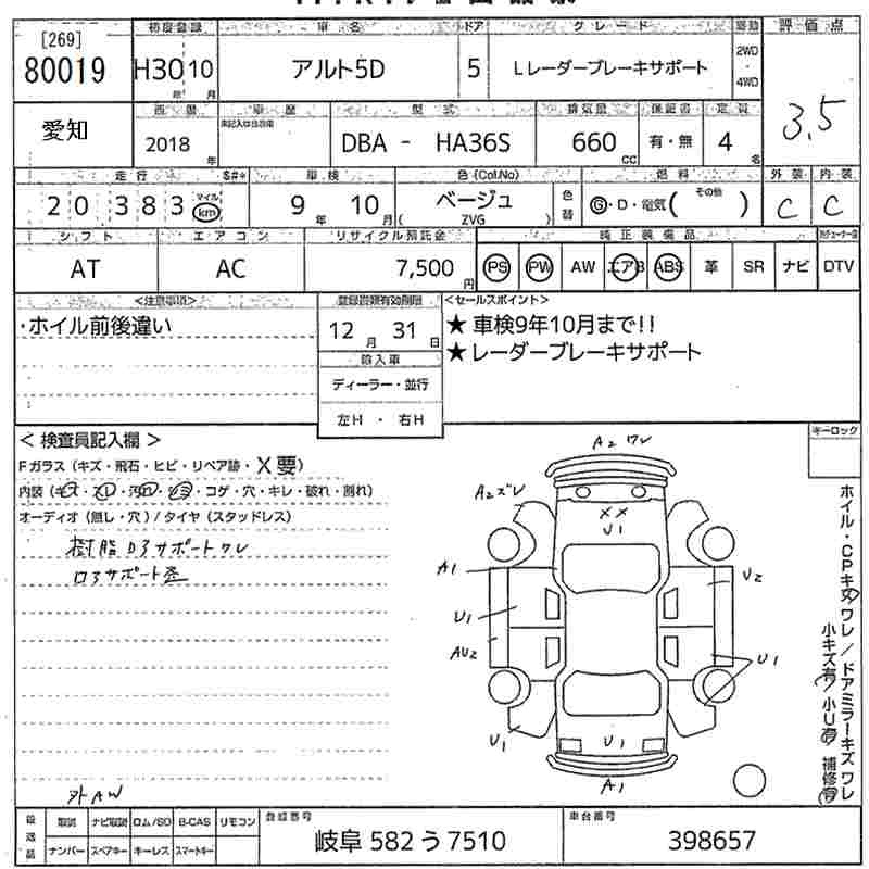 Suzuki Alto, 2018 года - Лот№80019 ★3.5
