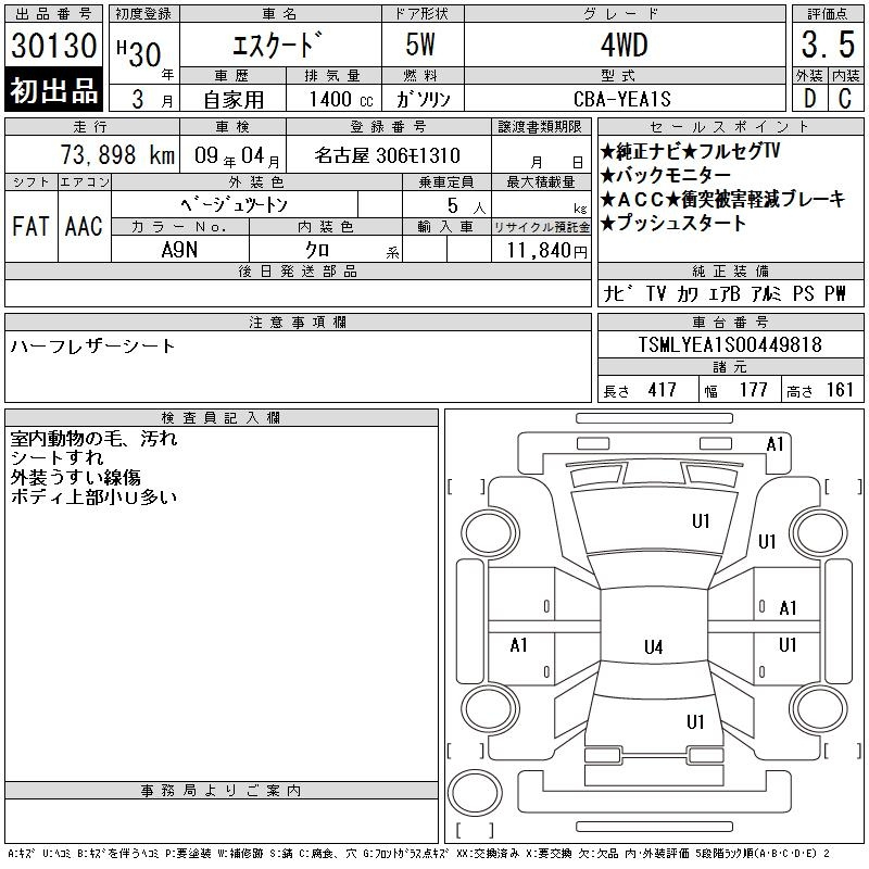 Suzuki Escudo, 2018 года - Лот№30130 ★3.5