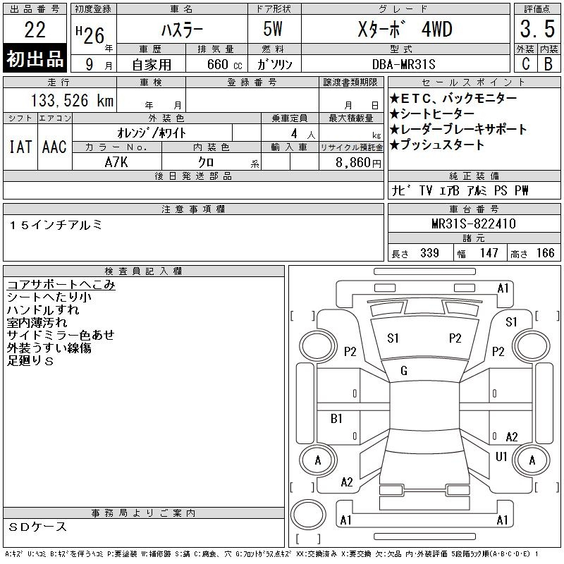 Suzuki Hustler, 2014 года - Лот№22 ★3.5