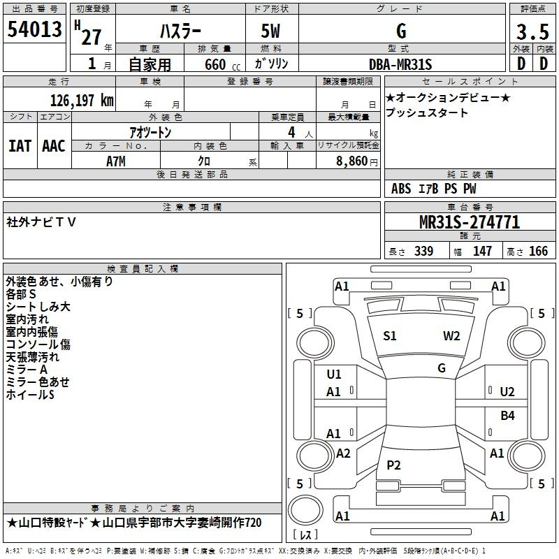 Suzuki Hustler, 2015 года - Лот№54013 ★3.5