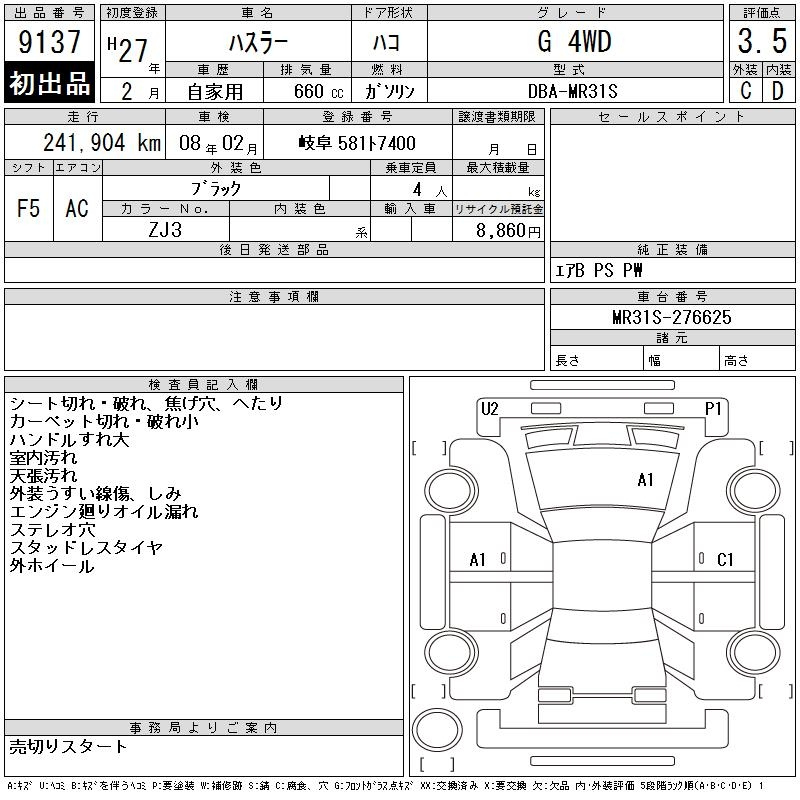 Suzuki Hustler, 2015 года - Лот№9137 ★3.5