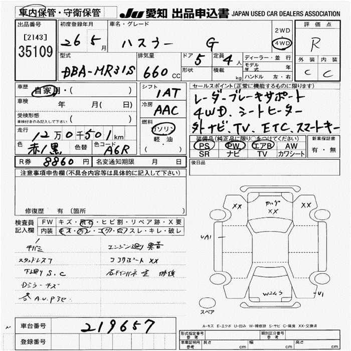 Suzuki Hustler, 2014 года - Лот№35109 ★R