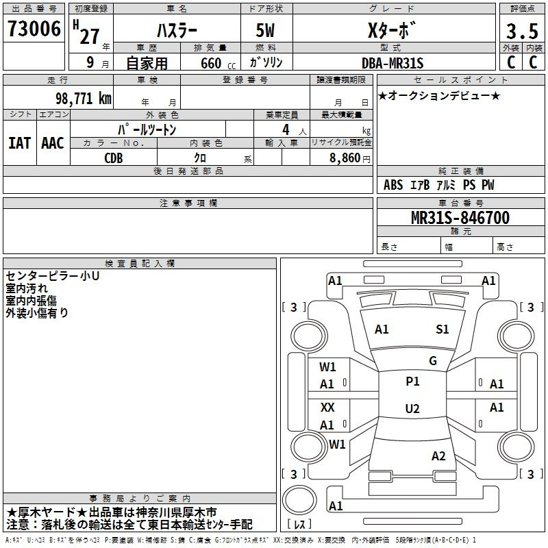 Suzuki Hustler, 2015 года - Лот№73006 ★3.5