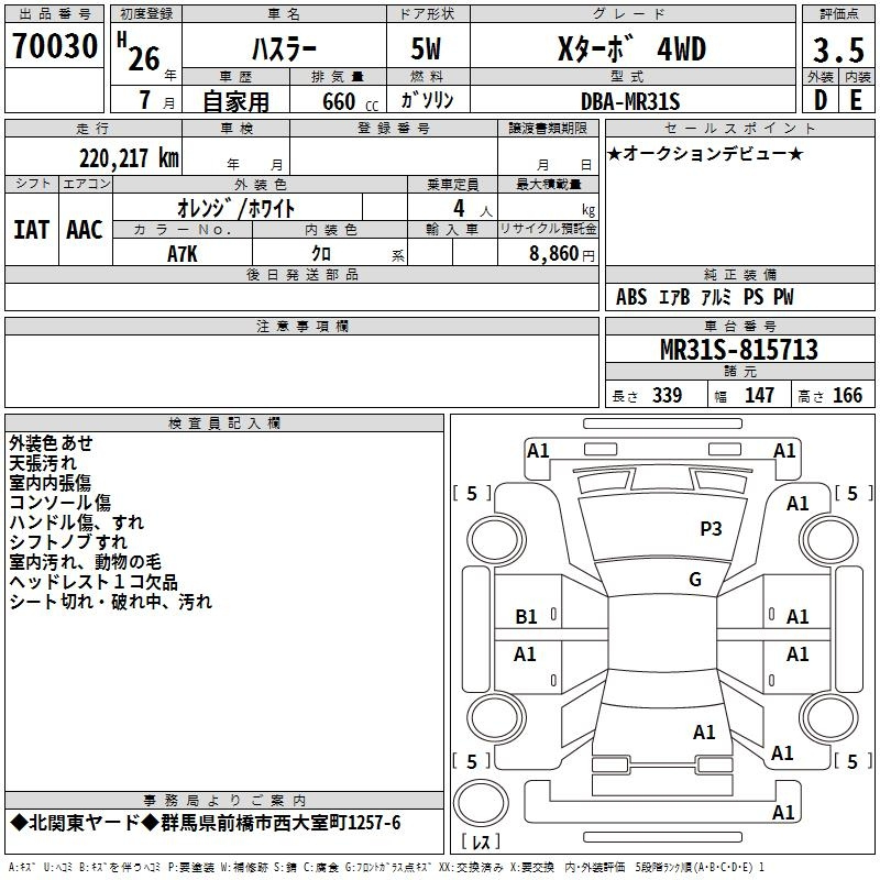 Suzuki Hustler, 2014 года - Лот№70030 ★3.5