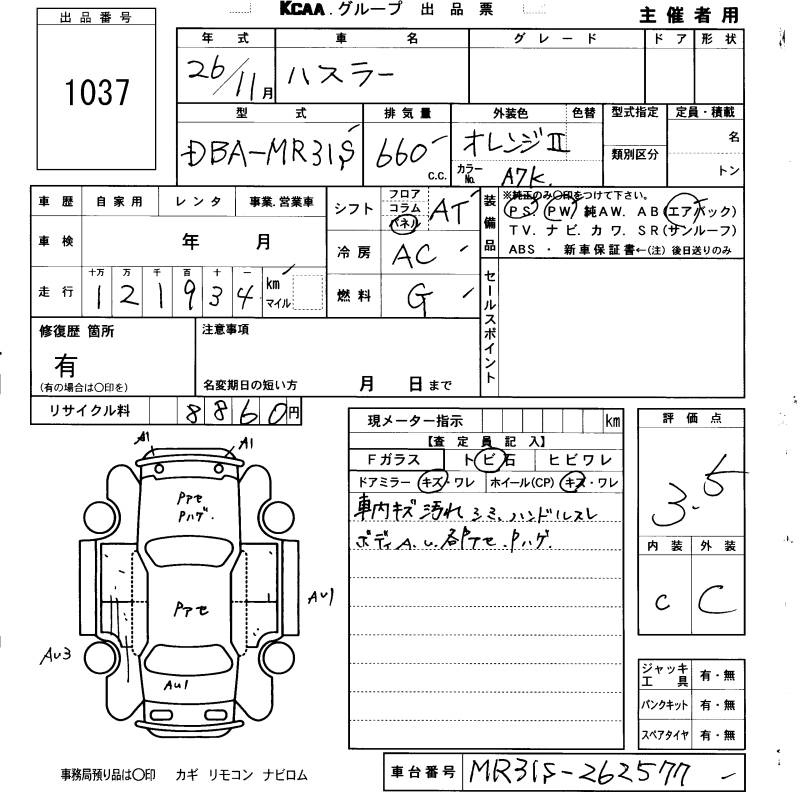 Suzuki Hustler, 2014 года - Лот№1037 ★3.5