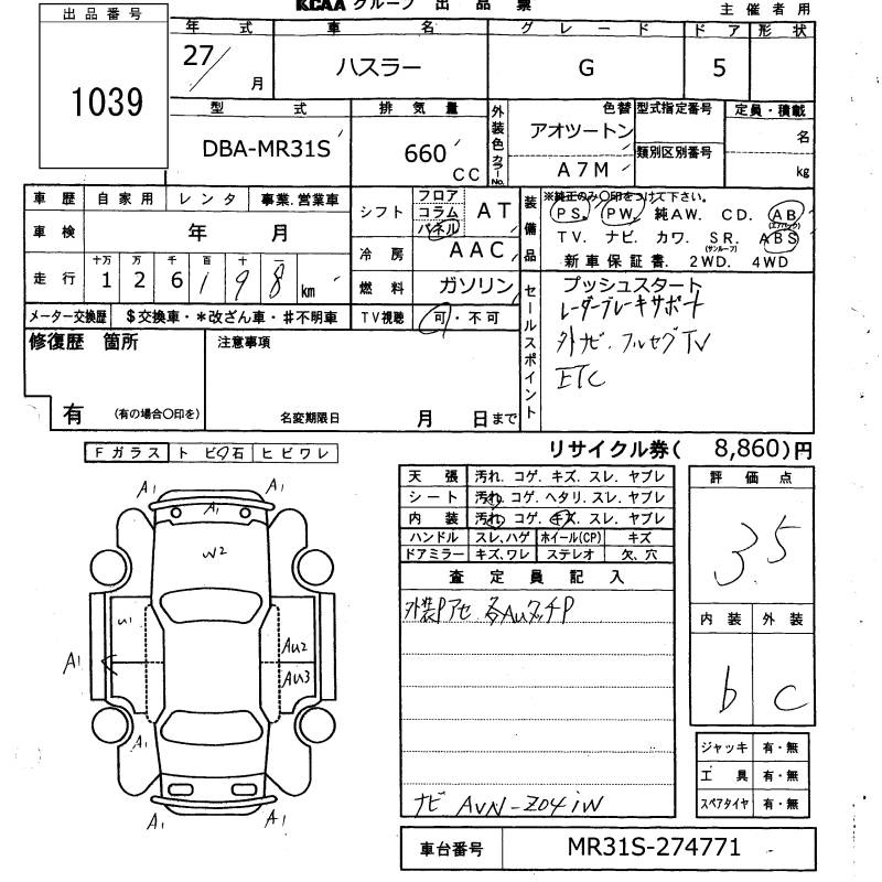 Suzuki Hustler, 2015 года - Лот№1039 ★3.5