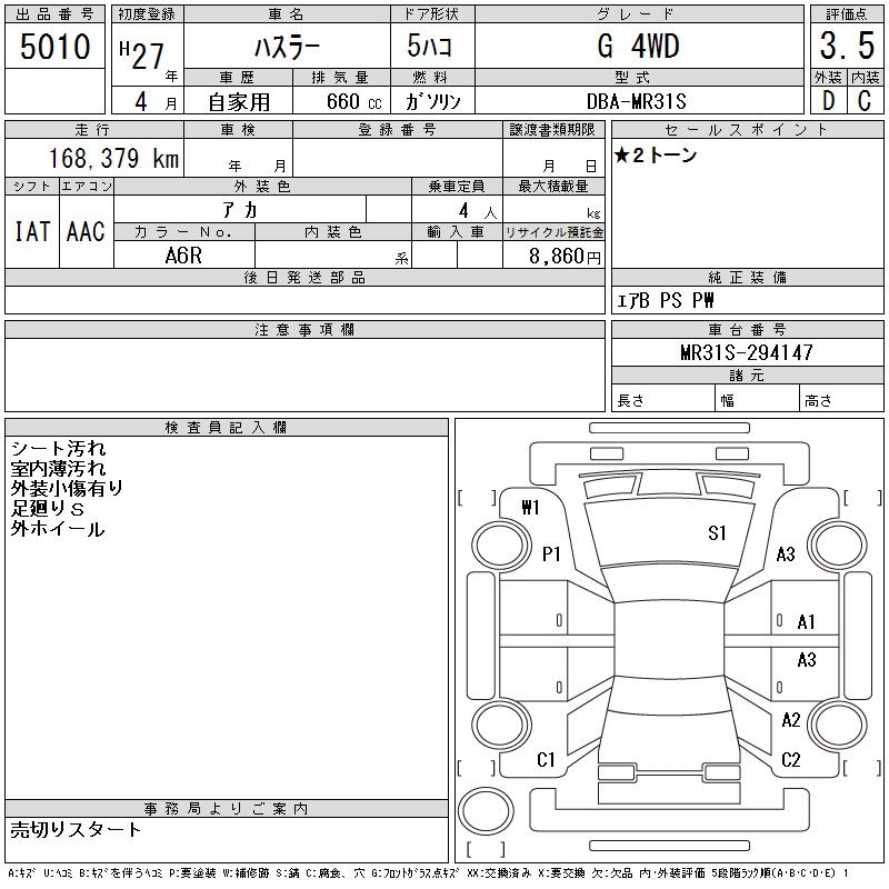 Suzuki Hustler, 2015 года - Лот№5010 ★3.5