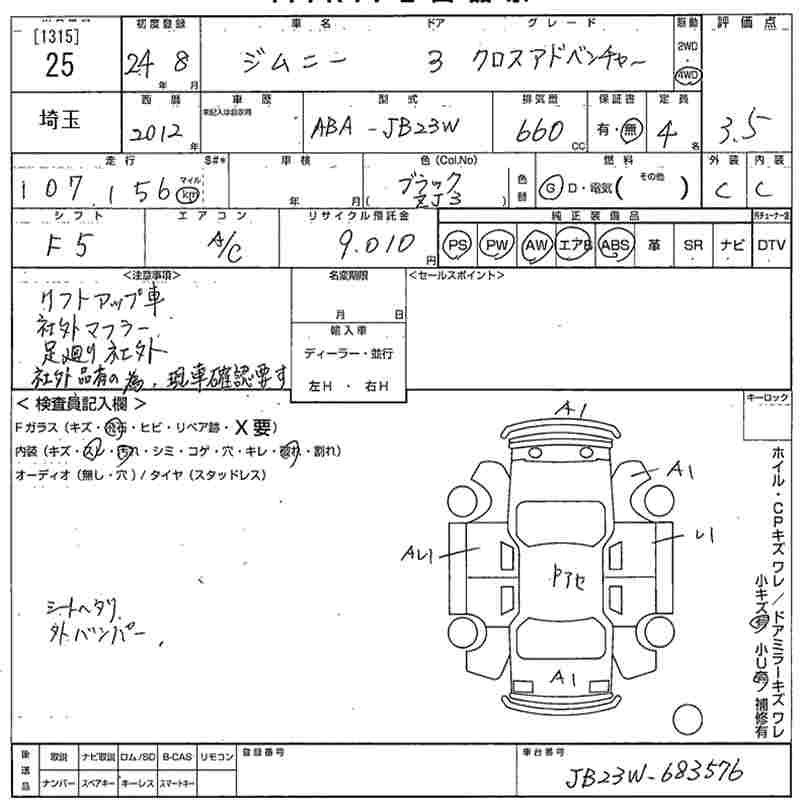 Suzuki Jimny, 2012 года - Лот№25 ★3.5