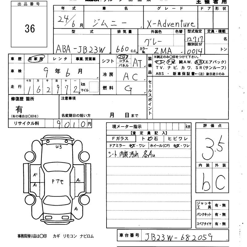 Suzuki Jimny, 2012 года - Лот№36 ★3.5
