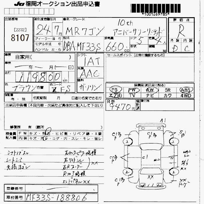 Suzuki Mrwagon, 2012 года - Лот№8107 ★R