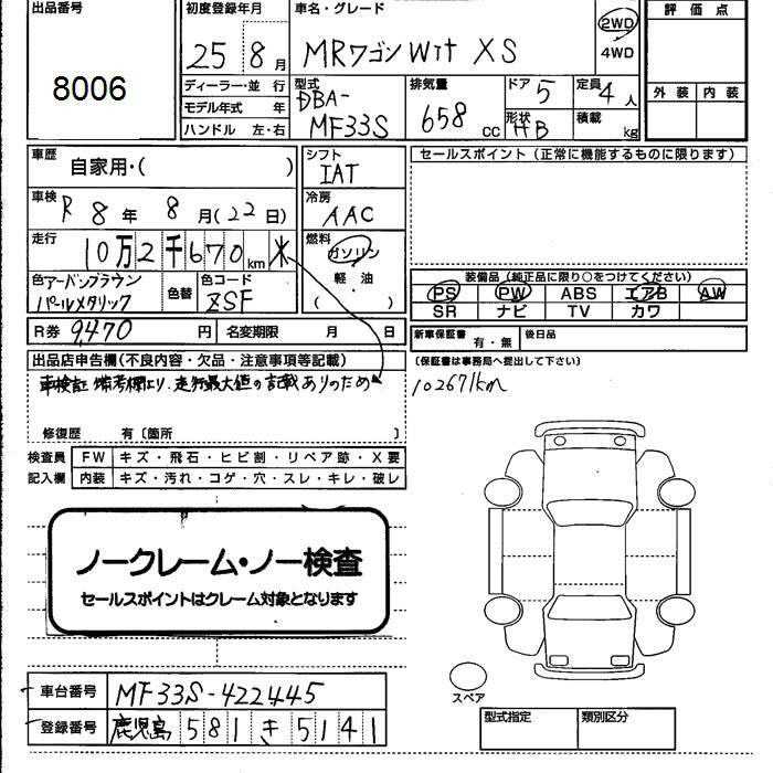 Suzuki Mrwagon, 2013 года - Лот№8006 ★-