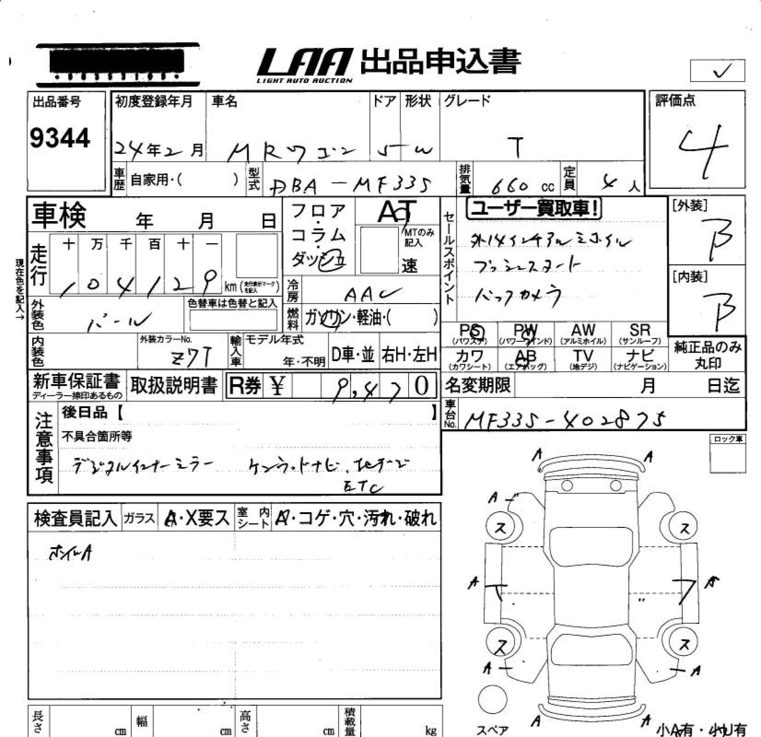 Suzuki Mrwagon, 2012 года - Лот№9344 ★4