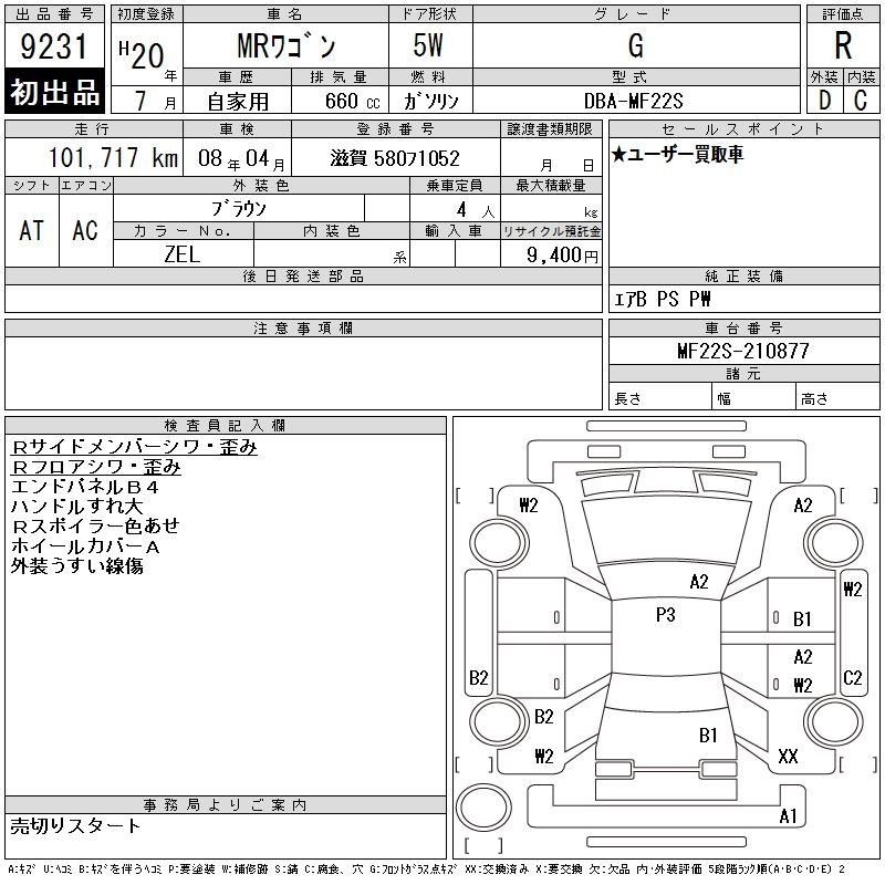 Suzuki Mrwagon, 2008 года - Лот№9231 ★R