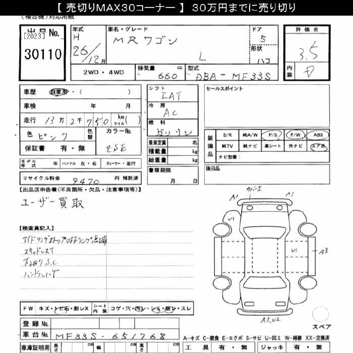 Suzuki Mrwagon, 2014 года - Лот№30110 ★3.5