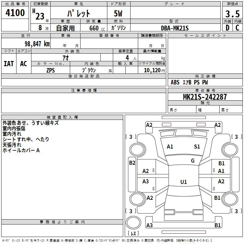Suzuki Palette, 2011 года - Лот№4100 ★3.5