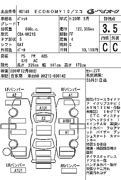 Suzuki Palette, 2008 года - Лот№140 ★3.5