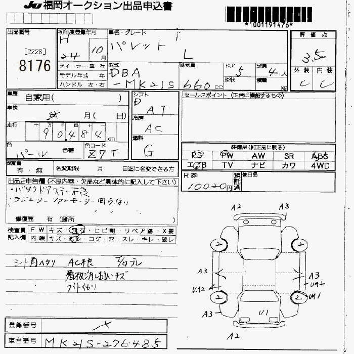 Suzuki Palette, 2012 года - Лот№8176 ★3.5