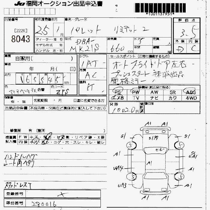 Suzuki Palette, 2013 года - Лот№8043 ★3.5