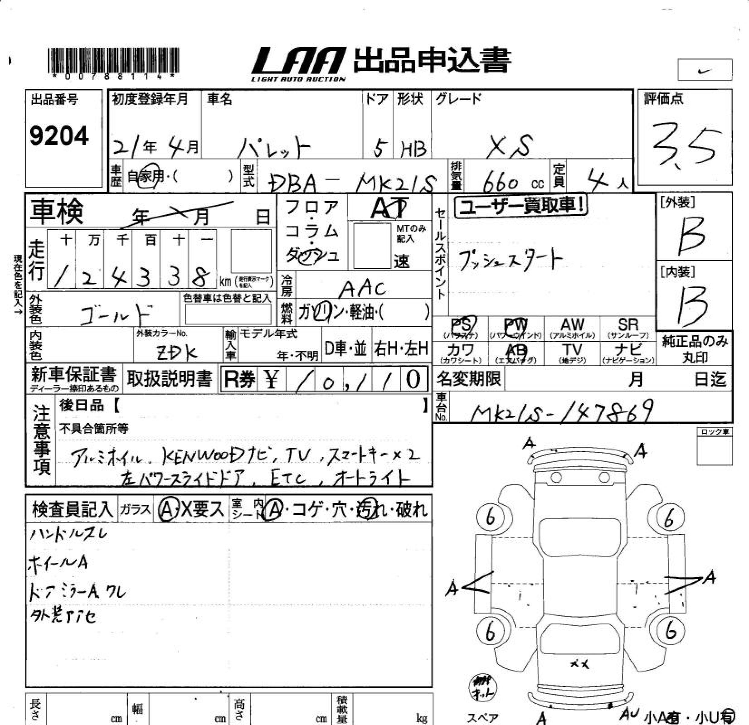 Suzuki Palette, 2009 года - Лот№9204 ★3.5