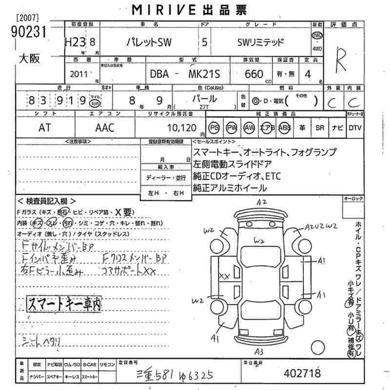 Suzuki Palette, 2011 года - Лот№90231 ★R