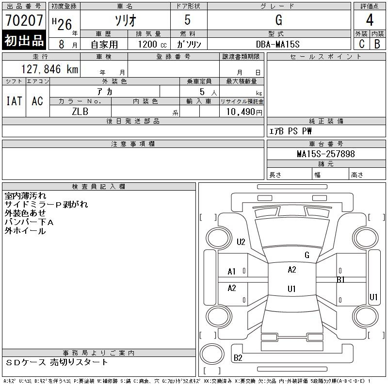 Suzuki Solio, 2014 года - Лот№70207 ★4