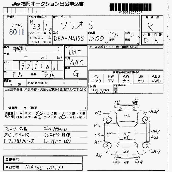 Suzuki Solio, 2011 года - Лот№8011 ★R