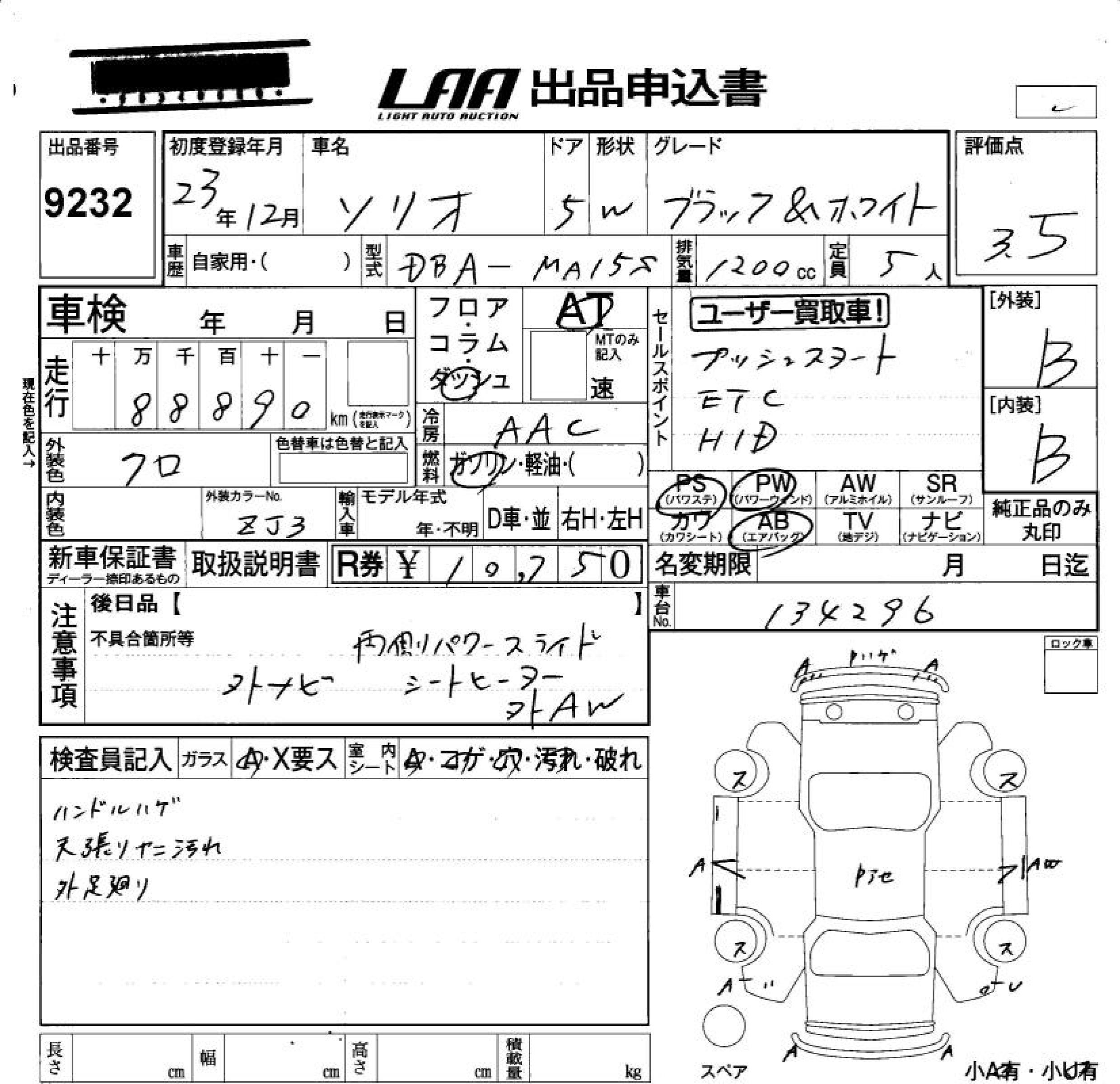 Suzuki Solio, 2011 года - Лот№9232 ★3.5