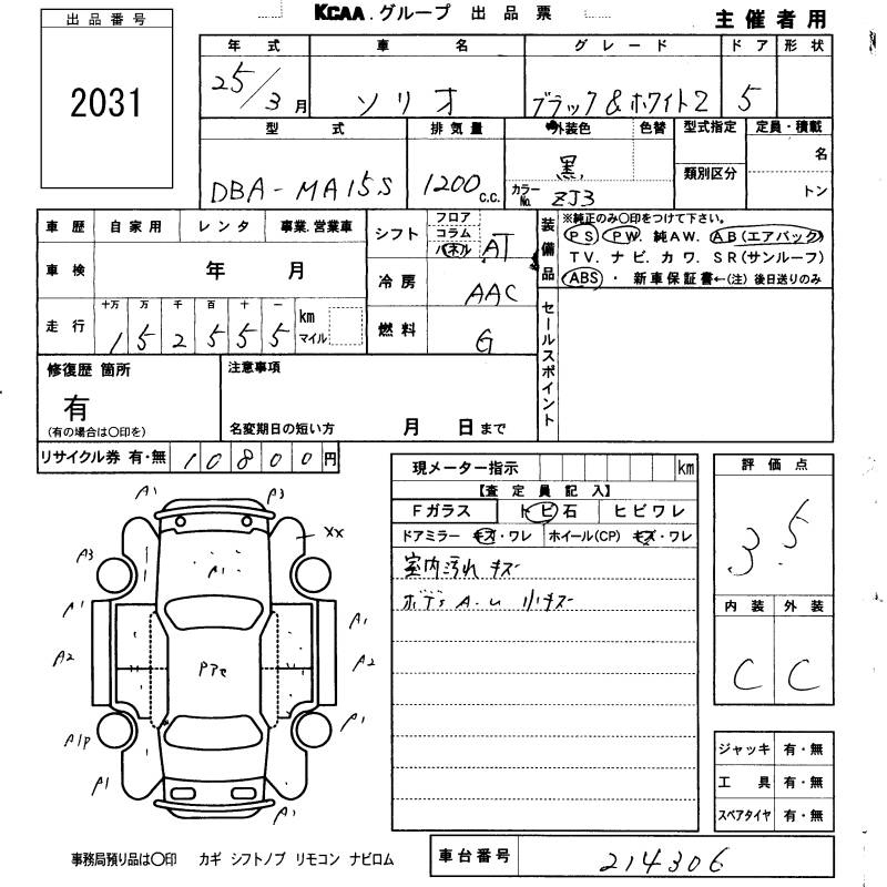 Suzuki Solio, 2013 года - Лот№2031 ★3.5