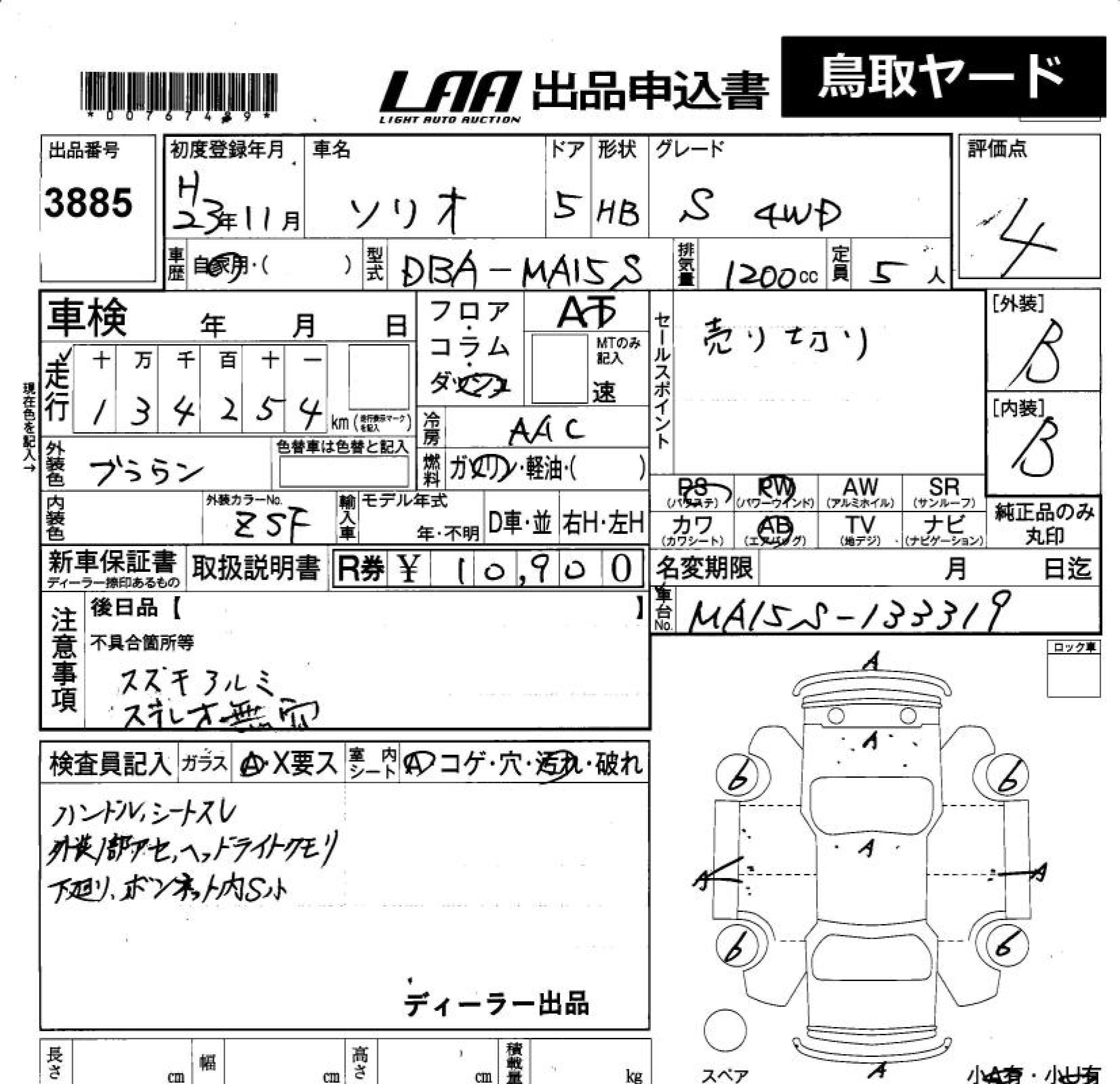Suzuki Solio, 2011 года - Лот№3885 ★4