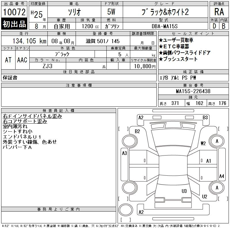 Suzuki Solio, 2013 года - Лот№10072 ★RA