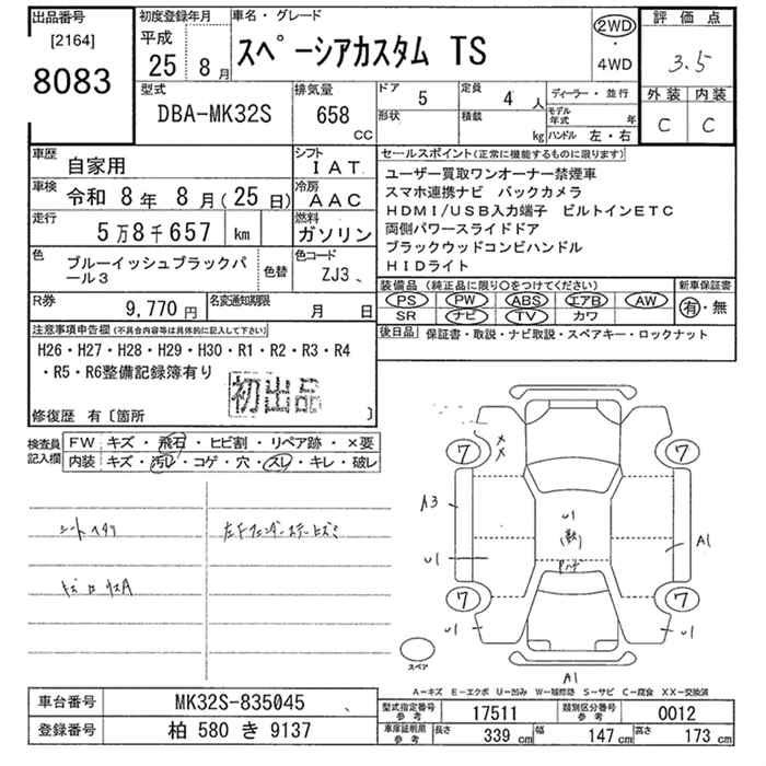 Suzuki Spacia, 2013 года - Лот№8083 ★3.5