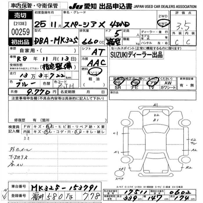Suzuki Spacia, 2013 года - Лот№259 ★3.5