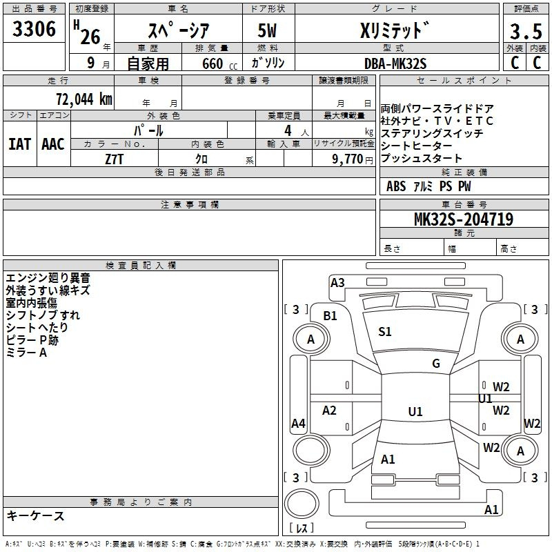 Suzuki Spacia, 2014 года - Лот№3306 ★3.5