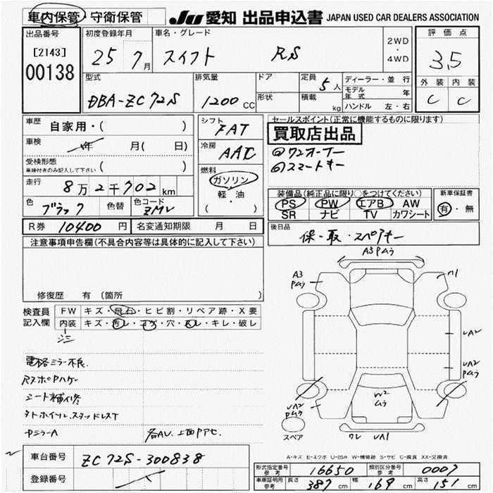 Suzuki Swift, 2013 года - Лот№138 ★3.5