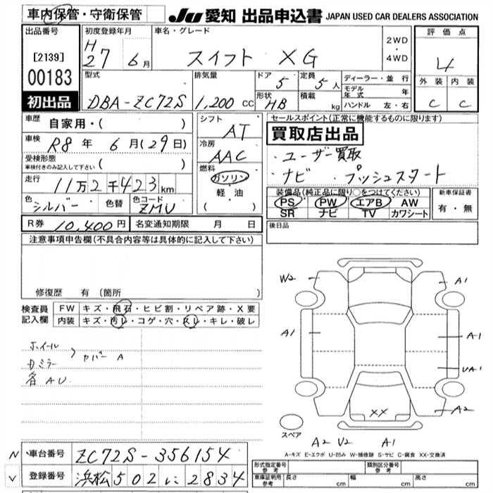 Suzuki Swift, 2015 года - Лот№183 ★4